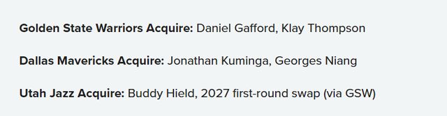 勇士得到:丹尼爾-加福德、克萊-湯普森