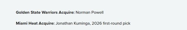 在熱火,鮑威爾曾長期擔(dān)任球隊(duì)進(jìn)攻核心,他的到來,也能為勇士時(shí)常萎靡的進(jìn)攻注入一劑強(qiáng)心針。而熱火或許會認(rèn)為,庫明加下賽季2400萬美元的球隊(duì)選項(xiàng),遠(yuǎn)比給狀態(tài)終將下滑的鮑威爾一份大合同更劃算。此外,希羅也即將迎來續(xù)約,邁阿密的薪資空間本就捉襟見肘。