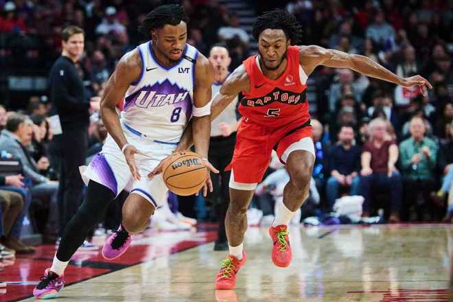中場(chǎng)休息回來(lái),猛龍進(jìn)攻火力大幅提升首次單節(jié)得分35+,爵士無(wú)緣連續(xù)兩節(jié)得分30+。猛龍進(jìn)攻端回暖開(kāi)啟反撲追分模式,巴雷特與巴恩斯持續(xù)攻傳結(jié)合,引領(lǐng)猛龍用團(tuán)隊(duì)攻勢(shì)逐步反超比分。猛龍單節(jié)35-28凈勝7分,三節(jié)結(jié)束猛龍86-84反超爵士。前三節(jié)比賽,爵士三分26中8,馬爾卡寧17中8得到23+8與科利爾18分6助攻,引領(lǐng)4人得分上雙;猛龍三分28中11,巴雷特17+3+3與巴恩斯11+9+4,引領(lǐng)5人得分上雙。