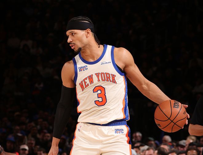 此戰(zhàn)尼克斯多點(diǎn)開(kāi)花,阿努諾比15中9(三分8中4)得到25分8板3助3斷、沙梅特13中8(三分10中6)得到23分3板1助,哈特11中8(三分4中3)得到20分4板2助,布倫森15中4得到12分7板13助、唐斯11中5得到11分13板4助2斷,布里奇斯12中5得到10分2助。