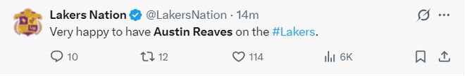 奧斯汀-里夫斯實在是太出色了,末節(jié)開場湖人還在落后,但在短短1分06秒的時間里里夫斯一人打出了8-0的攻勢直接幫助湖人反超,湖人隊記邁克-特魯戴爾都覺得不可思議。