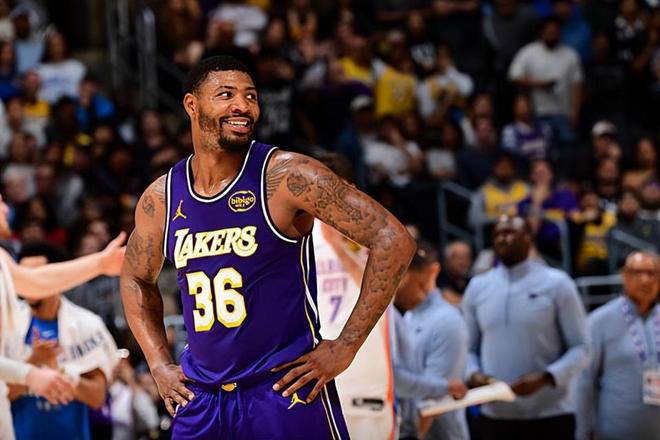 本場(chǎng)比賽中,湖人雖然輸?shù)袅吮荣?,但是球?duì)的先發(fā)后場(chǎng)大閘馬庫(kù)斯-斯馬特(Marcus Smart)的表現(xiàn)算得上是令人眼前一亮。斯馬特全場(chǎng)出場(chǎng)29分24秒,投籃16中7,三分線(xiàn)外7中4,罰球2中1,得到了19分3籃板3助攻2搶斷的數(shù)據(jù),還有1次失誤和1次犯規(guī),正負(fù)值為-4。斯馬特在進(jìn)攻端展現(xiàn)出了全面的得分能力,他能夠利用突破完成得分,他也展現(xiàn)出了不俗的外線(xiàn)投射能力。相比之下,斯馬特甚至可以說(shuō)是球隊(duì)最可靠的得分手,他也是在進(jìn)攻端起到了巨大的作用。斯馬特在防守端的表現(xiàn)同樣是相當(dāng)不錯(cuò)的,他也繼續(xù)扮演了后場(chǎng)大閘的角色并且在防守端起到了關(guān)鍵的作用。不夸張地說(shuō),要不是有斯馬特的超水平發(fā)揮,湖人顯然只會(huì)輸?shù)酶鼞K,甚至可能都沒(méi)有辦法撐到比賽最后一刻。