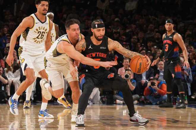 進(jìn)入第四節(jié)比賽,唐斯率先三分命中,步行者追到96-96,雙方隨后持續(xù)交替領(lǐng)先纏斗。尼克斯逐步以104-107落后,雙方繼續(xù)纏斗至110-110,尼克斯之后114-113領(lǐng)先,內(nèi)史密斯連得4分打停尼克斯。布倫森中投得分,內(nèi)姆哈德上籃回敬,布倫森兩罰一中,西亞卡姆拋射擴(kuò)大4分優(yōu)勢(shì)。布倫森2+1續(xù)命,雙方接連打鐵,西亞卡姆中投擴(kuò)大3分優(yōu)勢(shì),尼克斯請(qǐng)求暫停。布倫森三分不中,步行者碰出界尼克斯繼續(xù)獲得球權(quán),布里奇斯被戰(zhàn)術(shù)犯規(guī)兩罰全中,西亞卡姆被犯規(guī)兩罰一中。沙梅特絕殺三分不中,唐斯補(bǔ)籃造犯規(guī)兩罰全中扳平,雙方常規(guī)時(shí)間維持124-124。