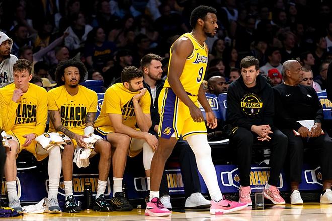 本場比賽中,由于多名核心球員輪休再加上比賽早早失去了懸念,湖人的替補(bǔ)后場新星布朗尼-詹姆斯(Bronny James)得到了不少的出場時間。布朗尼全場出場25分22秒,投籃10中5,三分線外2中2,得到了12分3籃板6助攻1蓋帽的數(shù)據(jù),還有2次失誤和3次犯規(guī),正負(fù)值為-6。布朗尼在進(jìn)攻端還是展現(xiàn)出了比較全面的得分能力,看起來他在中遠(yuǎn)距離投籃方面的穩(wěn)定性也是提升了不少的。除此之外,布朗尼在傳球和組織方面也是起到了很好的效果的,他也證明了自己有能力在進(jìn)攻端承擔(dān)起全面的責(zé)任。布朗尼在防守端的表現(xiàn)也是值得肯定的,他也是一名不錯的防守者。至少在本場比賽中,布朗尼算是發(fā)揮出了自己各方面的特點(diǎn)。作為一名替補(bǔ)球員,他已經(jīng)做得相當(dāng)不錯了,他也是湖人這場慘敗中為數(shù)不多的亮點(diǎn)了。