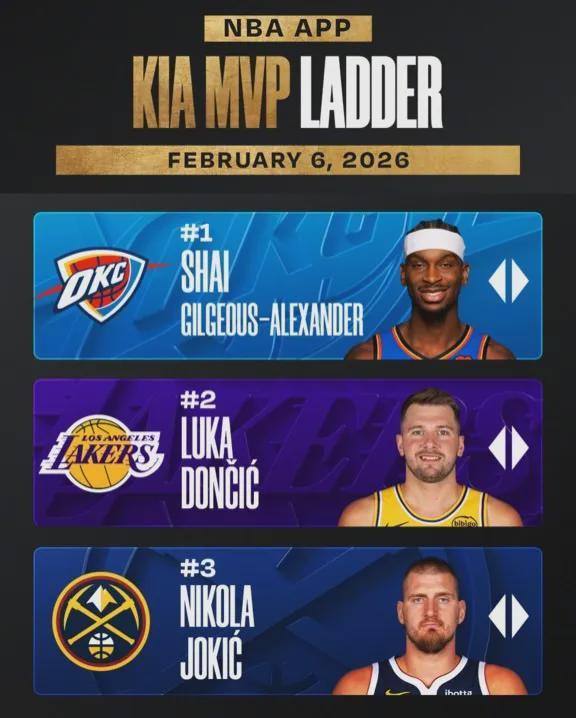 官方公布的最新一期MVP排行榜,亞歷山大、東契奇和約基奇分列前三,坎寧安第四,文班亞馬第五。
