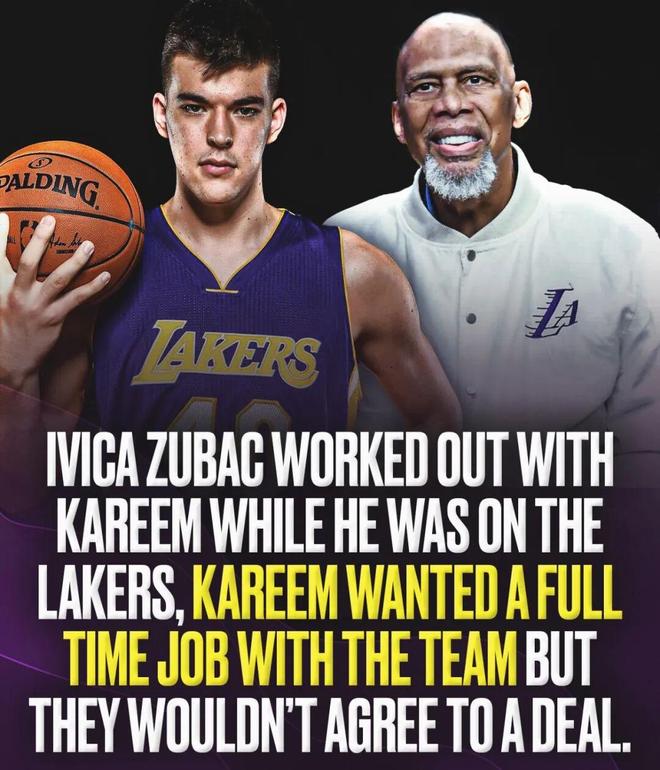 1、祖巴茨曾和賈巴爾一同訓(xùn)練過幾次,賈巴爾希望能在湖人得到一個(gè)全職職位,以指導(dǎo)他和其他內(nèi)線球員,但是湖人管理層并沒有同意;
