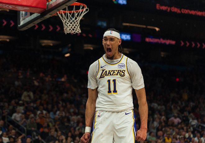 更為關(guān)鍵的是,海斯的活力還比艾頓要好。全場(chǎng)比賽海斯送出7個(gè)籃板,而且還有3個(gè)搶斷和1個(gè)蓋帽,他可以力保籃板與護(hù)框的穩(wěn)定性。因?yàn)楹K沟奶熨x在這里,他已經(jīng)在盡可能彌補(bǔ)內(nèi)線的隱患了。如果艾頓不行的話,海斯可以奠定內(nèi)線的基本盤,這對(duì)于湖人是好的保障。