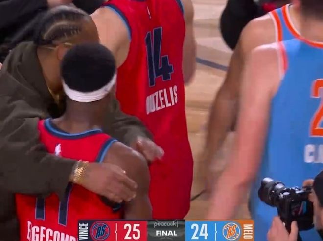 至于在決賽當(dāng)中,卡特隊25-24逆轉(zhuǎn)絕殺安東尼隊。埃奇庫姆首發(fā)登場8分45秒,貢獻5中2的表現(xiàn),其中外線三分3中0,但最后時刻關(guān)鍵兩罰全中絕殺,得到6分2籃板1搶斷的數(shù)據(jù)。