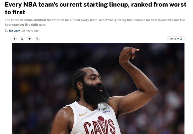 在全明星周末到來(lái),各支球隊(duì)基本敲定本賽季核心陣容后,美媒《fansided》根據(jù)各隊(duì)現(xiàn)有陣容評(píng)選并公布出30隊(duì)首發(fā)實(shí)力榜單,其中騎士獲哈登后飆升第4,火箭隊(duì)第7勇士14湖人17存在不小爭(zhēng)議。