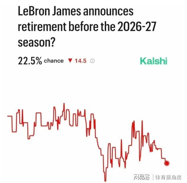 今日,體育預(yù)測(cè)平臺(tái)Kalshi也對(duì)其相關(guān)概率進(jìn)行了更新。數(shù)據(jù)顯示,詹姆斯在今年夏天宣布退役的概率已經(jīng)下降至22.5%。在 ESPN知名電視節(jié)目《Sports Center》的直播現(xiàn)場(chǎng),NBA 資深記者 Vincent Goodwill 針對(duì)勒布朗·詹姆斯的職業(yè)生涯前景展開了一番深入報(bào)道。