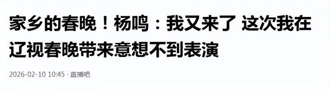 信息來源:直播吧:2026-02-10:家鄉(xiāng)的春晚!楊鳴:我又來了 這次我在遼視春晚帶來意想不到表演