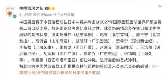 為了備戰(zhàn)這次的世預賽,中國男籃的集訓名單總共21人。但徐杰、程帥澎、曾凡博等部分球員都出現(xiàn)了不同程度的傷病。比如,徐杰是聯(lián)賽時經(jīng)歷了連續(xù)崴腳的傷病,這直接影響了他在國家隊的訓練與表現(xiàn);曾凡博則是在集訓過程中膝蓋出現(xiàn)了積水的問題。曾凡博和程帥澎是此前代表中國男籃出戰(zhàn)與韓國隊的世預賽的球員,這次頂替他們的分別是賀希寧與王浩然。