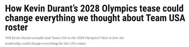 杜蘭特也并未宣布退出,他在接受ESPN記者古德威爾采訪時(shí),明確表態(tài)自己愿意出戰(zhàn)2028年洛杉磯奧運(yùn)。美媒ClutchPoints隨后對2028年美國男籃的名單展開分析——
