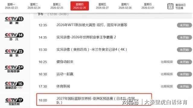 根據賽程顯示,世預賽中國男籃vs日本隊男籃的比賽將會在北京時間2月26日18點05分開打。