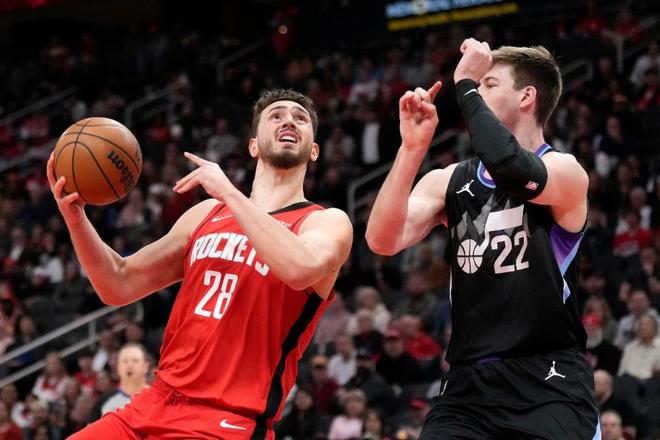 本場火箭缺少范弗利特、亞當斯與泰特,爵士缺少賈倫-杰克遜、凱斯勒與努爾基奇3大內(nèi)線,喬治也因傷缺席。