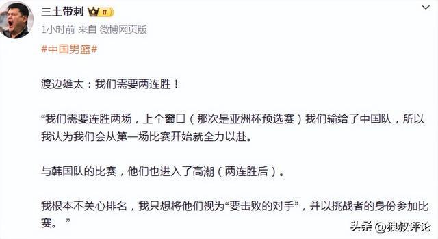 世預(yù)賽第二個窗口期,中國男籃對陣日本男籃將于2月26日正式開打,賽前,日本男籃核心渡邊雄太接受媒體采訪,談到即將主場對陣中國男籃的話題。