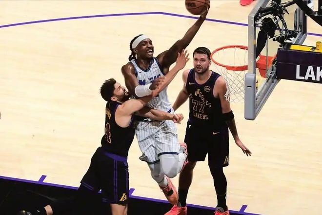 末節(jié)決戰(zhàn),魔術(shù)三分球突然開張,前三節(jié)只命中了3個(gè)三分球,第四節(jié)卻突然連中3球,一度將比分反超。隨后湖人不甘示弱,詹姆斯和里夫斯輪番發(fā)力,多次命中關(guān)鍵球,將比分再度追平。關(guān)鍵時(shí)刻,班凱羅接管比賽,里突外投連拿7分,湖人則由東契奇連續(xù)命中兩個(gè)接鍋三分球,點(diǎn)燃主場,隨后八村塁也命中底角三分,助攻也來自東契奇。最后6秒,魔術(shù)落后1分,班凱羅投籃不進(jìn),小卡特籃下二次進(jìn)攻打進(jìn),反超1分!