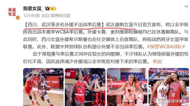 中國(guó)女籃的天塌了,根據(jù)知情人士透露,WCBA女籃季后賽恐怕將面臨一大尷尬境地,由于常規(guī)賽與季后賽相間時(shí)間太長(zhǎng),不少外援已經(jīng)選擇不在繼續(xù)為WCBA聯(lián)賽效力了,轉(zhuǎn)而加盟其他海外聯(lián)賽了。武漢女籃已經(jīng)正式宣布,他們將以全華班出戰(zhàn)季后賽,而爭(zhēng)冠大熱門球隊(duì)四川隊(duì),他們也放棄了外援希爾斯曼。從這一點(diǎn)上來(lái)看,今年的WCBA季后賽,恐怕更無(wú)亮點(diǎn)可言了。