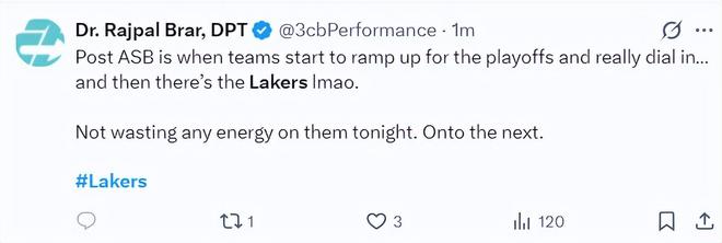 賽后專家Rajpal 寫道:在常規(guī)賽的最后階段各隊(duì)都在為季后賽做準(zhǔn)備,全力以赴。。。。而湖人真實(shí)讓人捧腹大笑。我們不該對他們抱有期待,接著往下走吧。