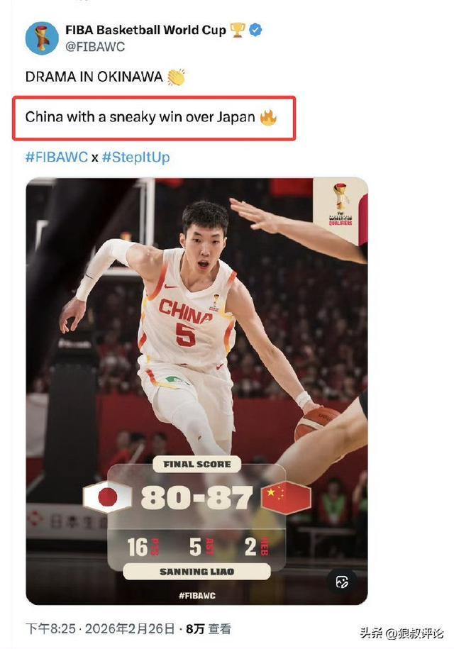 北京時間2月27日, FIBA國際籃聯(lián)官方今日聲明,因昨日比賽結(jié)果帖子的措辭不當(dāng)而向中國男籃、中國球迷以及整個中國籃球界致歉。