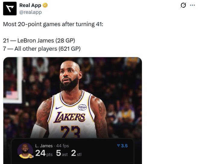憑借這樣的表現(xiàn),詹姆斯在41歲之后出戰(zhàn)28場比賽就已經(jīng)21次單場交出20+得分表現(xiàn)再度刷新NBA歷史紀錄。