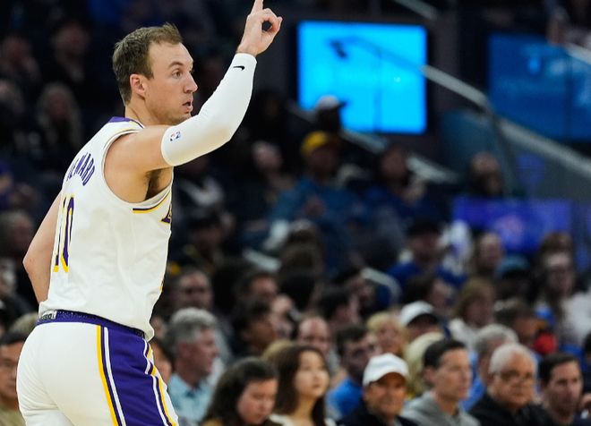 肯納德10中4得到11分1板5助1斷1帽,即便總命中率不怎么樣,但他的三分命中率高,可以策應(yīng),防守也可以,可以給到全面的帶動,就是戰(zhàn)術(shù)有點少。斯瑪特5中3的三分,還有5個搶斷,這兩個人對湖人就是寶貝了??死肇悹栠@兩場打出一些價值了,終結(jié)效率高,可以搶籃板,也可以護框,給到的貢獻是實質(zhì)性的。海斯可以終結(jié)、保護籃板和護框,成為內(nèi)線基本盤。