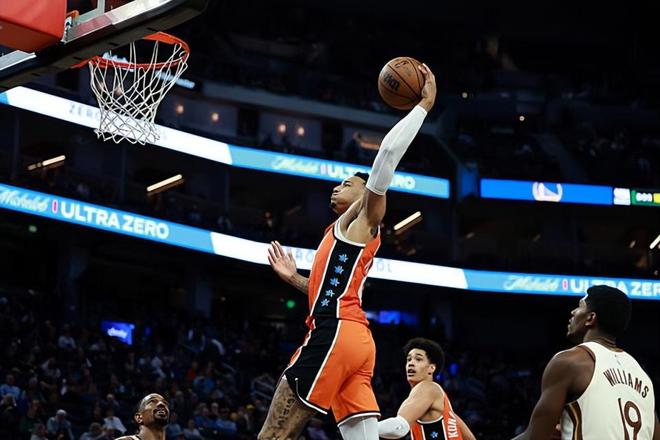 本場比賽中,快船的替補側(cè)翼新星喬丹-米勒(Jordan Miller)的表現(xiàn)算得上是令人刮目相看。米勒全場出場25分鐘,投籃6中5,罰球2中2,得到了12分6籃板1蓋帽的數(shù)據(jù),還有1次失誤,正負值也是達到了+15。米勒在進攻端的出手次數(shù)和球權(quán)其實并不多,但是他的進攻效率相當(dāng)驚人,他的突破能力以及他在節(jié)奏變化方面的能力真是非常驚艷。米勒也是抓住了有限的機會得到了不少分數(shù)。不僅如此,米勒在籃板保護方面的表現(xiàn)也是相當(dāng)不錯的,他在防守端也是起到了很好的效果的。米勒在本場比賽中算是在攻防兩端都發(fā)揮出了自己的特點。如果他能夠得到更多的出手機會,他的數(shù)據(jù)顯然還會有進一步的提升,他也能夠起到更大的作用。