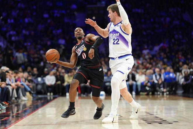 76人此前遭遇兩連敗,33勝28負(fù)排在東部第六,急需一場勝利提振士氣;爵士則遭遇六連敗,18勝43負(fù)穩(wěn)居西部倒數(shù)第二,狀態(tài)低迷。上半場,雙方短暫相持后,菲利波夫斯基半節(jié)就累計3次犯規(guī),陷入犯規(guī)麻煩,76人抓住機(jī)會內(nèi)外開花,轟出15-3的攻擊波取得兩位數(shù)領(lǐng)先。此后爵士不甘示弱,不斷沖擊內(nèi)線連投帶罰追趕比分,次節(jié)76人命中率下降,爵士穩(wěn)扎穩(wěn)打縮小分差,半場戰(zhàn)罷76人53-48領(lǐng)先5分。