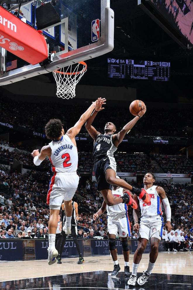 次節(jié)比賽,馬刺連續(xù)兩節(jié)單節(jié)得分30+,活塞也是進(jìn)攻回暖轟下30+展開對攻。馬刺繼續(xù)在雙核引領(lǐng)下內(nèi)外開花得分,馬刺逐步擴(kuò)大52-35領(lǐng)先優(yōu)勢,活塞連追4分。雙方持續(xù)展開拉鋸戰(zhàn),馬刺被追到62-52領(lǐng)先,馬刺一波9-0攻勢擴(kuò)大優(yōu)勢,活塞略有反撲追分,馬刺單節(jié)33-32凈勝1分,上半場結(jié)束馬刺71-53領(lǐng)先活塞。前兩節(jié)比賽,活塞三分14中5,坎寧安16中5得到11分5助攻與斯圖爾特12分;馬刺三分20中8,文班亞馬13中7得到24+7與??怂?3中9得到22分。