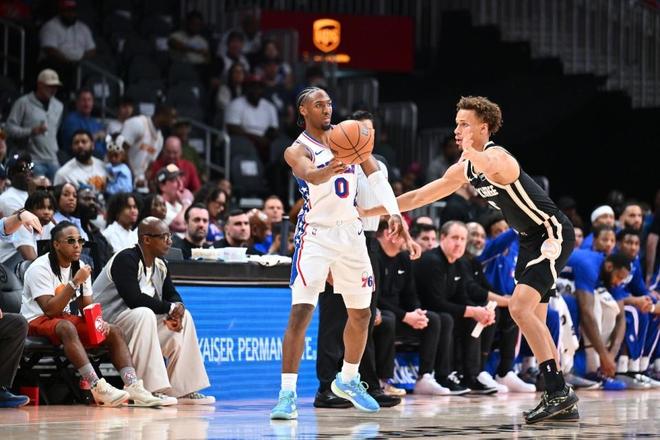 老鷹過(guò)去5場(chǎng)收獲5連勝,76人上一場(chǎng)主場(chǎng)106-102險(xiǎn)勝爵士,本賽季前三次交鋒老鷹均戰(zhàn)勝76人。本場(chǎng)76人缺少恩比德、喬治、埃奇庫(kù)姆,老鷹缺少庫(kù)明加。首節(jié)比賽前4分鐘,雙方持續(xù)緊咬比分纏斗至76人13-14落后,杰倫暴扣,76人一波9-0攻勢(shì)反超6分。76人多點(diǎn)開(kāi)花逐步擴(kuò)大33-22領(lǐng)先,并在之后擴(kuò)大28-26領(lǐng)先優(yōu)勢(shì),老鷹再追3分,首節(jié)比賽結(jié)束76人38-29領(lǐng)先老鷹9分優(yōu)勢(shì)。