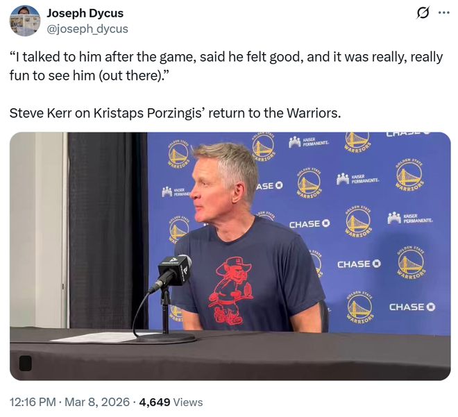 由于本場比賽庫里、巴特勒、梅爾頓、理查德等一眾核心球員缺席,勇士隊(duì)輸給雷霆隊(duì)并不讓人意外,比賽拖到最后時(shí)刻才輸球更是值得稱贊。