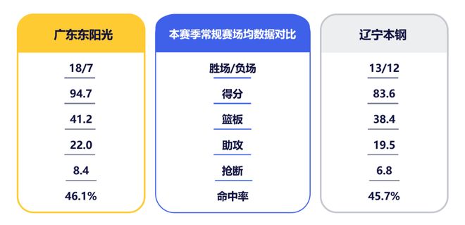 兩隊(duì)數(shù)據(jù)對比