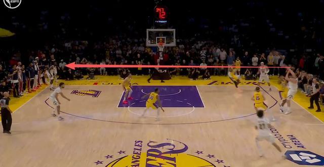 下個回合,約基奇再次展現(xiàn)了自己恐怖的球場視野。湖人把防守資源幾乎全部傾斜在約基奇身上,把約基奇逼到了右側(cè)邊線的位置。但約基奇一記超級大對角傳球,傳給了底角的哈達威,后者命中三分再次反超。