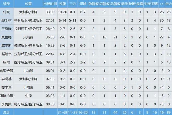 遼寧隊(duì)數(shù)據(jù)如下: