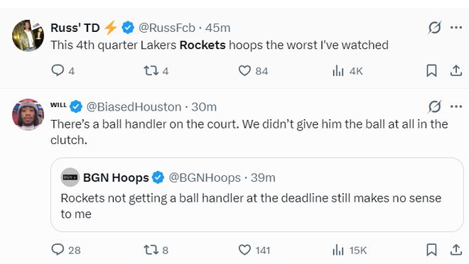 美媒:火箭第四節(jié)VS湖人的比賽是我見過最糟糕的一場。