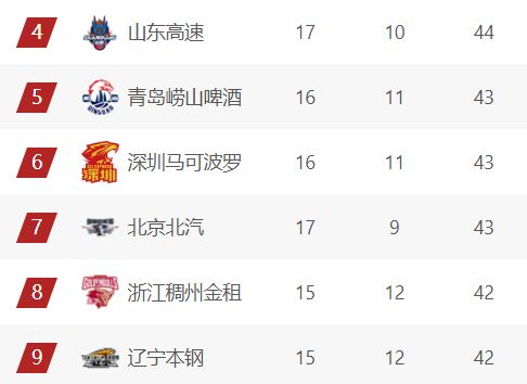 第4-8名球隊(duì)依次是山東、青島、深圳、北京、浙江。