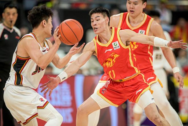 3月18日,浙江浙商證券隊球員朱俊龍(右)在比賽中突破。新華社記者 江漢 攝