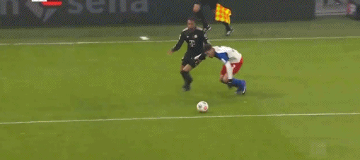 第34分鐘,小紅書丨裁判判罰基米希犯規(guī),法比奧-維埃拉點(diǎn)射,漢堡1-0拜仁
