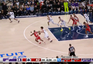 半場(chǎng)結(jié)束時(shí),爵士追到50-53,情況危急