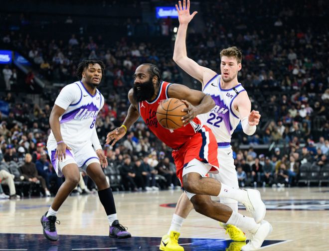 快船過(guò)去5場(chǎng)豪取5連勝反彈,爵士上一場(chǎng)主場(chǎng)119-129輸給凱爾特人,本賽季首次交鋒快船客場(chǎng)108-129輸給爵士。本場(chǎng)快船缺少祖巴茨、博格丹、比爾,爵士缺少馬爾卡寧、努爾基奇、喬治、凱斯勒等7位球員。首節(jié)前5分鐘,快船攻防碾壓爵士打出夢(mèng)幻16-0攻勢(shì),爵士一波7-2攻勢(shì)追分。快船內(nèi)外開花一波10-0攻勢(shì),已經(jīng)擴(kuò)大28-7領(lǐng)先21分優(yōu)勢(shì),爵士板凳席引領(lǐng)一波10-3攻勢(shì)追分,首節(jié)結(jié)束快船31-17領(lǐng)先爵士。首節(jié)快船三分10中2,哈登7中3與罰球5中5得到11+3+2、萊昂納德7分,爵士三分8中1,首發(fā)菲利波夫斯基、米哈伊柳克與亨德里克斯合計(jì)7中0得到0分。