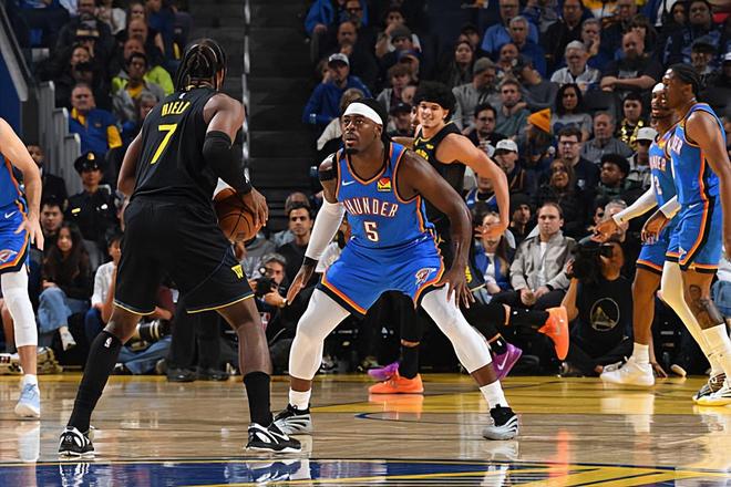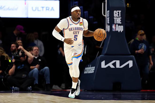本場比賽中,雷霆的先發(fā)側(cè)翼大閘呂岡茨-多爾特(Luguentz Dort)的整體也是有了明顯的提升。多爾特全場出場26分13秒,投籃5中4,三分線外4中3,得到了11分3籃板1搶斷的數(shù)據(jù),還有2次犯規(guī),正負值更是達到了全場最高的+33。多爾特在防守端依然是保持了自己應(yīng)有的水準,依然是有著超強的個人防守能力,保持了應(yīng)有的防守強度,并且起到了很好的效果。最關(guān)鍵的是,多爾特在本場比賽中算是將自己在進攻端應(yīng)有的才能發(fā)揮了出來,他的進攻效率相當(dāng)不錯,他在三分線外更是給對手制造了不小的威脅。在出手次數(shù)不多的情況下,他也是得到了不少分數(shù)。本場比賽中多爾特的表現(xiàn)算得上是攻守兼?zhèn)?,他的一系列出色表現(xiàn)也是為球隊的這場大勝提供了巨大的支持。