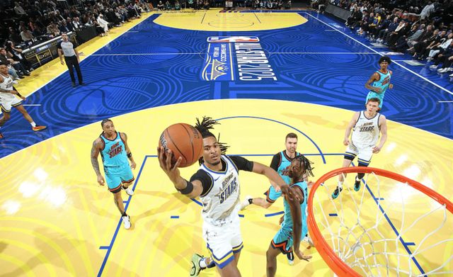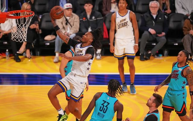 2025年2月,舊金山全明星周末,一位20歲的年輕人成為最大贏家。頂著高高發(fā)辮的斯蒂芬·卡斯?fàn)柦舆^新秀賽最有價值球員獎杯,素來平靜的臉上閃過一絲笑容,他將獎杯高高舉起,享受著全場的歡呼與掌聲。