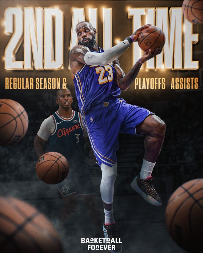 此役勒布朗的歷史總助攻還超過了克里斯-保羅升至歷史第二位,他也是NBA歷史首位得分第一+助攻第二的球員,41歲的他即將打破51000分大關(guān)。