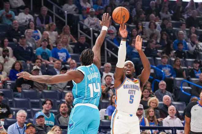 中場休息回來,黃蜂連續(xù)三節(jié)單節(jié)得分30+,且限制雷霆連續(xù)兩節(jié)單節(jié)不足25分。亞歷山大單節(jié)9中4得到12分有所回暖,但雷霆其余球員依然低迷合計僅得到9分,反觀黃蜂依然是團隊攻勢壓制。雷霆難以阻擋黃蜂的攻勢,雷霆單節(jié)21-32輸?shù)?1分,三節(jié)結(jié)束雷霆已經(jīng)71-97落后黃蜂。前三節(jié)比賽,米勒已經(jīng)13中8得到28+6,尤其是外線三分9中7極為高效,亞歷山大21中7得到21分6助攻。
