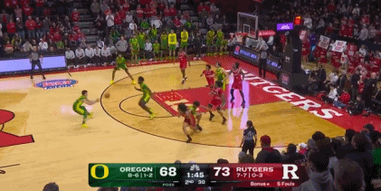 當然這比賽打到最后,俄勒岡的其他人今天都不太行,球權自然而然來到了林葳手中。最后三分鐘,俄勒岡大學從65到76分這11分,全部都是林葳得到的,包括三記三分以及一記拋投。