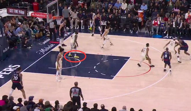 第二次漏判發(fā)生在距離比賽結(jié)束還有1分23秒,勇士隊(duì)的格林在沒有積極防守對方球員的情況下,在己方禁區(qū)停留時間超過三秒,這是一次漏吹的防守三秒違例,勇士獲利,快船吃虧。