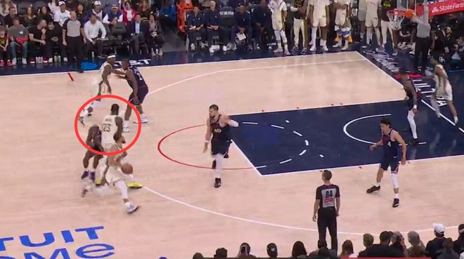 第一次漏判發(fā)生在距離比賽結(jié)束還有1分40秒,勇士隊(duì)的格林在掩護(hù)時切入快船隊(duì)鄧恩的行進(jìn)路線,并發(fā)生了身體接觸。庫里借此機(jī)會投中了一記三分球。這是一次漏吹的進(jìn)攻犯規(guī),勇士獲利,快船吃虧。