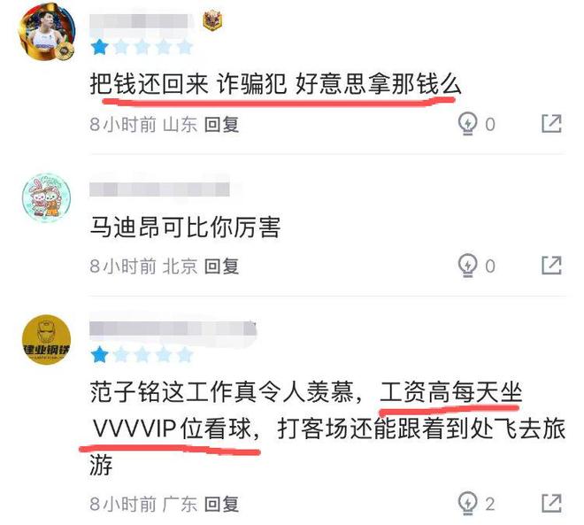全場比賽,拿著600萬年薪的范子銘0分0板0助0帽0斷,所有數(shù)據(jù)統(tǒng)計只有1次被蓋和2次犯規(guī),正負值-5,真是慘不忍睹。有球迷直言:詐騙犯,好意思拿那么多錢?