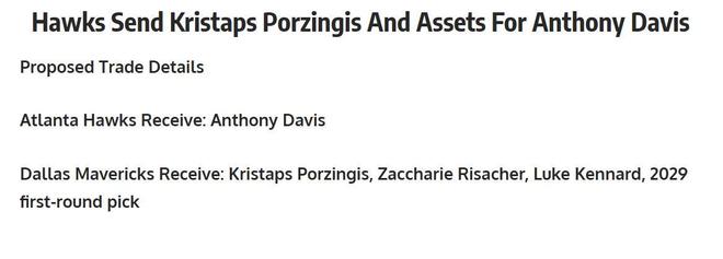 如果老鷹隊下定決心想要得到濃眉哥,也做好了提供大額續(xù)約合同的準備,那么這筆交易方案完全值得考慮。