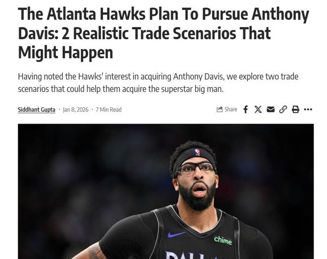 名記Jake Fischer表示在勇士隊興趣退卻后,市場中只有老鷹與猛龍隊是真正有意得到濃眉哥的兩支球隊,其中老鷹隊最為積極。
